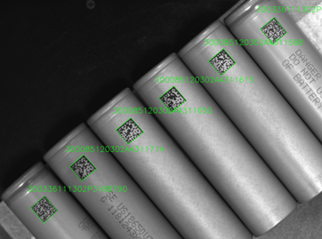 圆柱电池中间有高光,反光比较严重,且二维码在圆柱上有轻微变形,增加项目难度。